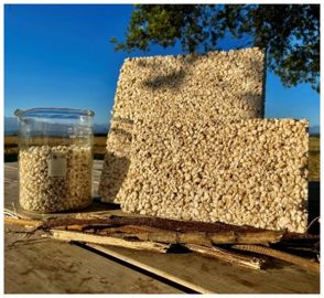 Les recherches se sont surtout concentrées sur la moelle qui est, dixit le spécialiste, « le meilleur des matériaux biosourcés qu’on a développé ». L’équipe a créé un moyen simple de réaliser des panneaux usinables de 80 cm de côté, en utilisant des liants naturels à base d’amidon de blé, de pois ou de chitosane, un dérivé de la carapace de crustacés.