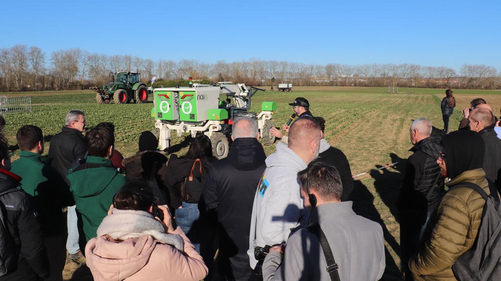 Le Forum international de la robotique agricole (Fira) s’est tenu du 4 au 6 février 2025 sur les terres de l’Agrobiopole à Auzeville-Tolosane (Haute-Garonne). Cette édition a offert l’occasion de voir apparaître de grands noms du machinisme. Ces derniers sont venus soit pour des présentations, soit, tout simplement, avec un stand. C’est le cas de New Holland qui a présenté un tracteur T4 équipé d’un Lidar pour se repérer dans les rangs arboricoles ou viticoles. De leur côté, Kuhn et DeLaval ont fait le choix de profiter des scènes pour présenter sur écran leurs solutions en matière de robotique. Kioti est aussi venu pour la première fois avec le robot de transport RT100 qui pourra à l’avenir accueillir d’autres outils comme un pulvérisateur ou une plateforme élévatrice.