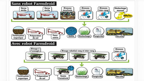 Ces calculs ont été réalisés pour une exploitation céréalière « type normande bio » de 160 ha. C’est là que se joue l’une des différences. Les outils de désherbage mécanique sont, dans les calculs, utilisés pour d’autres cultures. Le robot n’est ici amorti que sur les 20 ha de betteraves. Thomas Leborgne nuance également la surface réalisable par le FarmDroid. « Vingt hectares, c’est déjà beaucoup, il ne faut pas que les conditions climatiques soient trop compliquées. En outre, la propreté ne sera pas la même qu’après un désherbage manuel. »