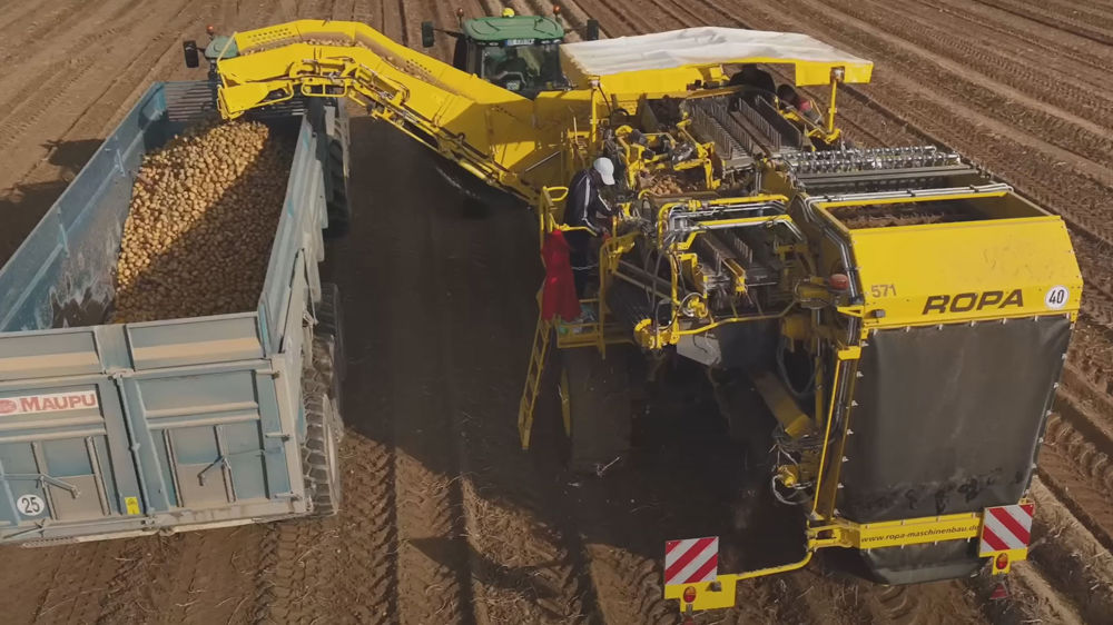 Le constructeur allemand Ropa fait évoluer sa gamme d’arracheuses de pommes de terre avec l’arrivée de la Keiler 2 DoubleSelect. L’objectif de cette innovation est d’augmenter la capacité de séparation des mottes et des cailloux. À cet effet, l’arracheuse reçoit un séparateur supplémentaire UFK à trois rangées de doigts sur le tapis à tétines n°2. L’ensemble est associé à un canal de déchets et une plate-forme de triage sur le flanc gauche de la machine le long du tapis n°3.