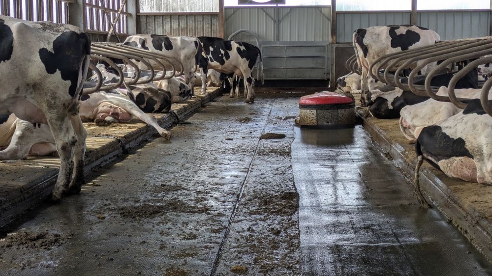 « Il y a un an, c’était le feu, avec 70 % de vaches boiteuses dans le troupeau. Aujourd’hui, le nombre de boiteries est très supportable », témoigne Pierre-Marie Douinot, installé en SCEA à Larchamp en Mayenne, avec 65 prim’holsteins à la traite pour produire 840 000 litres de lait par an. En zéro pâturage dans une stabulation bardée sur tous ses pans avec logettes équipées de matelas, la dermatite lui a donné du fil à retordre. En juin 2024, Pierre-Marie décide d’investir dans un robot aspirateur à lisier, le Lely Discovery collector, pour remplacer le racleur dans la stabulation. Son but, « éviter le bain de bouse formé par le racleur que les vaches devaient franchir, le cocktail parfait pour la dermatite ».