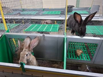 Les lapins BEA sont logés dans des parcs surélevés combinés. Modulables, ces derniers se transforment, grâce à des trappes, en logement individuel pour les mères lapines, puis en logement collectif pour les lapins à l’engraissement. Exemptes de grillage au sol mais équipées d’un caillebotis plastique repose-pattes et d’une mezzanine, les cages sont plus spacieuses et plus confortables.