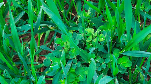 « Le couvert est implanté à coûts réduits. Les semences de blé, prises dans le silo, sont semées à 150 kg/ha à la volée. Cette pratique adaptée aux conditions météo de novembre, assure un débit de chantier élevé. Le paillage au sol, lié au semis des céréales, limite l’été l’évapotranspiration et facilite la récolte. Par contre avec un soja semé dans le couvert de blé, le sol se réchauffe plus lentement. Du glyphosate est indispensable pour maîtriser les petites mauvaises herbes, telles que le pâturin et le mouron. » À l’avenir, Romuald entend continuer à implanter des couverts au maximum. Pour cela il faut maîtriser leur croissance. « Sans glyphosate ou nouveau produit homologué et accessible financièrement, ce sera beaucoup plus dur. Tout notre système risque de s’écrouler ».