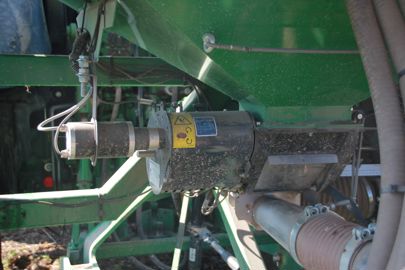 Viennent ensuite les vingt descentes, espacées de 15 cm et placées sur trois rangées. En termes de dégagement, c’est un peu juste, car nous avons parfois des bourrages. Avec quatre rangées, cela arriverait sans doute moins souvent, mais le porte-à-faux serait plus important et il faudrait alors un tracteur plus puissant au niveau du relevage.