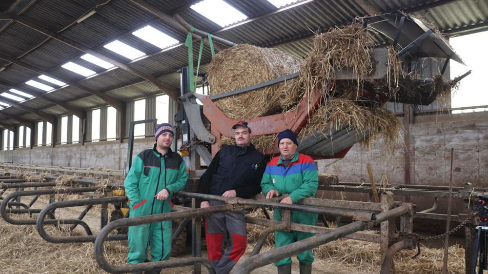 C’est pour aider son père Jean-Paul et son frère Franck que David Richard, mécanicien en poids-lourd, a adapté une dérouleuse-pailleuse à un chariot élévateur. L’exploitation familiale est installée sur la commune de Willer, dans le Haut-Rhin. Cette ferme de polyculture-élevage comprend des vaches laitières et 60 hectares, dont 22 sont affectés aux cultures et le reste au pâturage. La production laitière atteint 654 000 litres par an. « Les bâtiments de la ferme ne sont pas récents, l’un d’eux est particulièrement étroit et le couloir entre les logettes n’offre pas la possibilité de mécaniser le paillage. C’est pourquoi nous appliquions la paille à la main avant d’avoir la pailleuse Suire et le chariot élévateur Komatsu », explique Jean-Paul.
