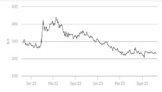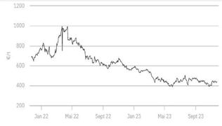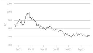 En baisse à la clôture du marché à terme européen le lundi 20 novembre 2023, les cours reprenaient d...