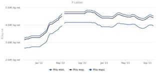 Le prix de base a reculé de 0,9 centime pour atteindre 1,994 €/kg ce lundi 9 octobre 2023 au Marché ...