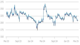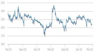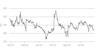 L’échéance rapprochée de mai affichait une baisse importante de plus de 8,00 € sur Euronext le 22 av...