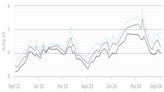 La tonne a nettement progressé jeudi 5 septembre 2024 pour se stabiliser à l’ouverture du marché à t...
