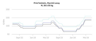 Le prix de base a augmenté de 0,9 centime ce jeudi 27 juin 2024, pour atteindre 2,064 €/kg au Marché...