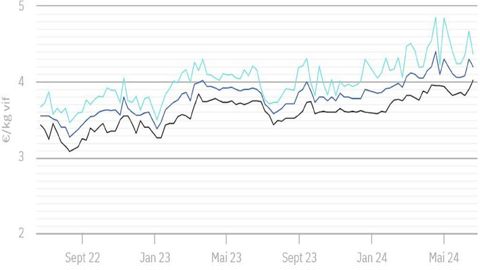 Pour les limousins, les tarifs se tassent également, mais ils demeurent à des niveaux très convenables, avec des broutards de 300 à 350 kg à 6,50 €/kg, et des animaux de 350 à 400 kg à 5,90 €/kg de moyenne.