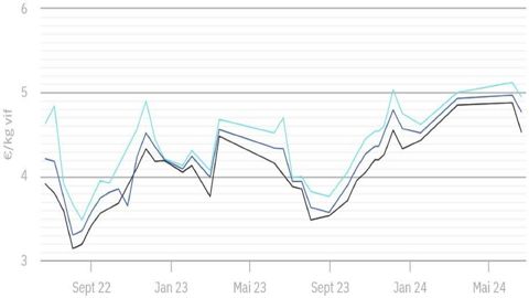 Les tarifs des agneaux sont revus à la hausse. Les U se valorisent en moyenne entre 4,14 €/kg vif à Moulins-Engilbert et 4,30 €/kg vif à Parthenay.