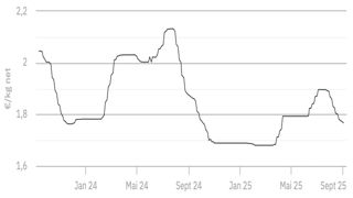 Le prix de base s’est maintenu à 1,663 €/kg ce lundi 15 septembre 2025, au Marché du porc français (...
