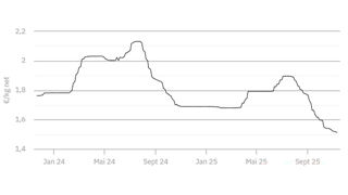 Le prix de base du porc a de nouveau enregistré une baisse de 0,3 cent...
