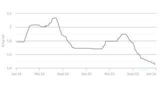 Le prix de base observé au Marché du porc français ce jeudi 8 janvier 2026 perd 0,1 centime par rapp...