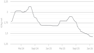Le prix de base a été reconduit à 1,410 €/kg ce jeudi 19 février 2026 ...