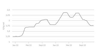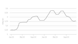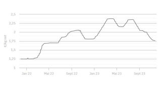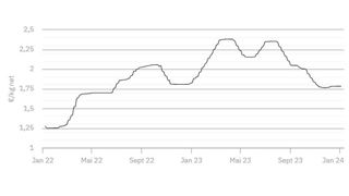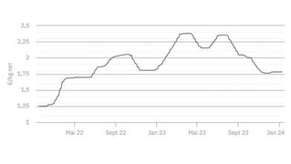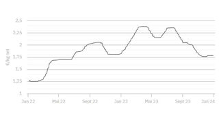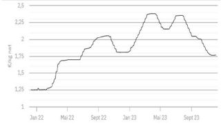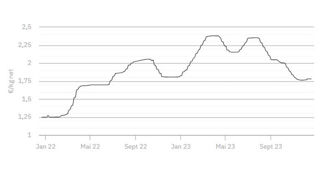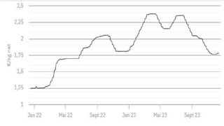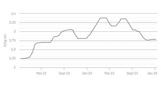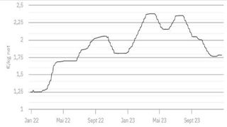 À 1,782 €/kg, le cours établi le 21 décembre 2023 est confirmé ce mardi 26 décembre.