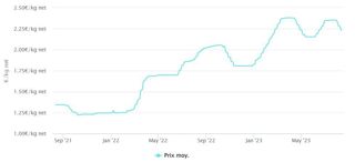 Ce mercredi 12 juillet 2023, le cours du porc progresse de 2 millièmes à 2,352 €/kg sur le Marché du...