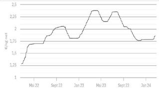 Le prix de base a progressé de 3,6 centimes ce jeudi 29 février 2024 au Marché du porc breton (MPB),...