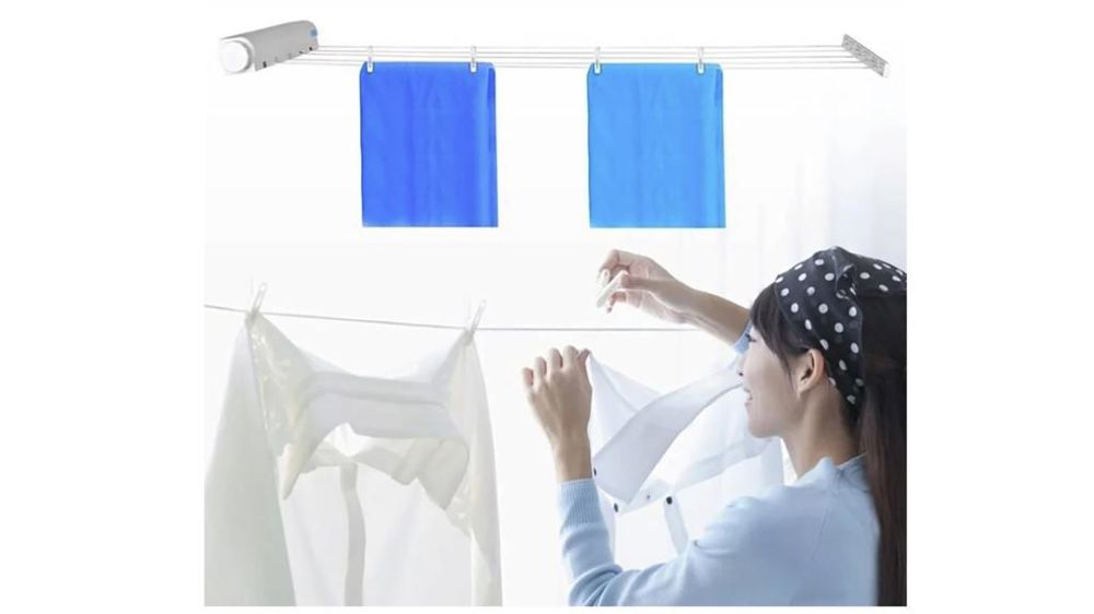 En complément de celui-ci ou d’un tancarville (si vous préférez un étendoir horizontal), équipez-vous d’un enrouleur de corde à linge rétractable avec cinq lignes de fils. Fixé entre deux murs, il n’occupe plus de place, une fois rangé. Marques : Brabantia, Leifheit, Leroy Merlin, etc.
